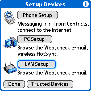 - Option 2: Go to Preferences > Bluetooth. Choose "Setup Devices", and on the following screen, choose "LAN Setup".